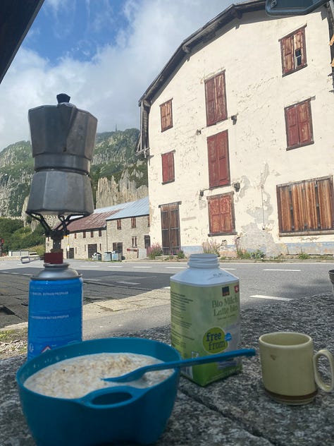 There are camping options along the route (in Andermatt and Interlaken) to dodge unaffordable accommodation prices.